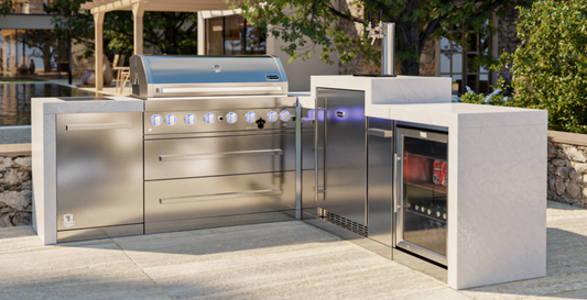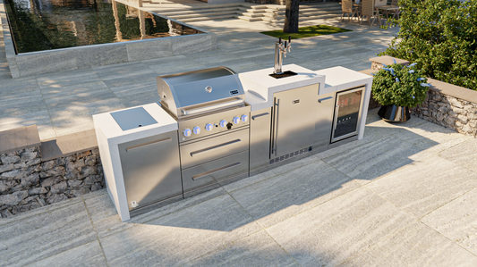 Mont Alpi 805 Deluxe BBQ Grill Island with 90 Degree Corner & Kegerator - MAi805-D90KEG