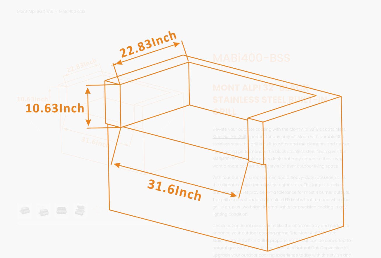 Elevate your outdoor cooking with the Mont Alpi 32" Black Stainless Steel Built-In Grill - perfect for any project. Made with durable 304 stainless steel, this grill is built to withstand the elements and deliver long-lasting performance. The black stainless steel finish gives the MABi400-BSS a sleek, modern look that may appeal to those who want a more contemporary style for their outdoor living space.