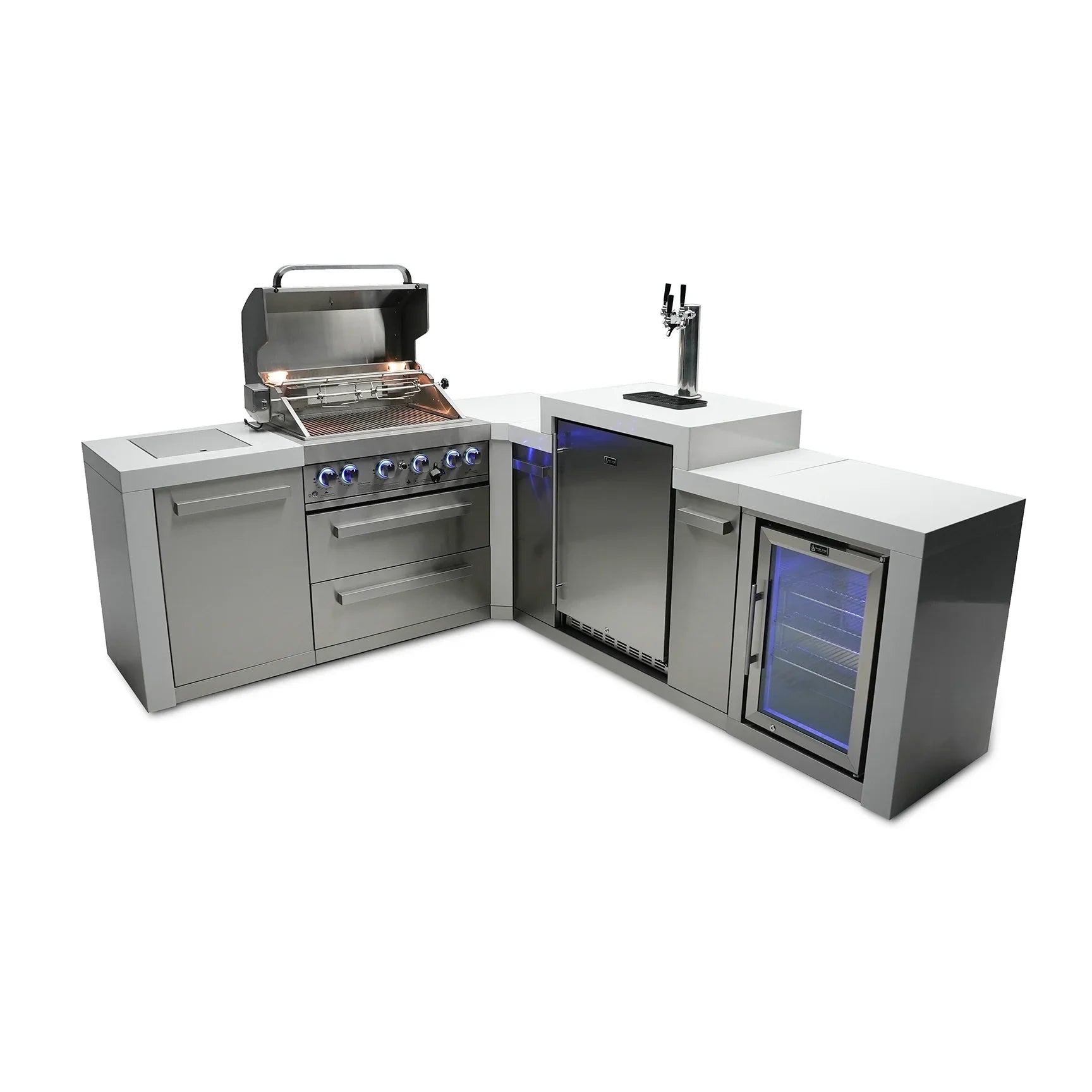 Mont Alpi 400 Deluxe BBQ Grill Island with 90 Degree Corner, Kegerator & Fridge Cabinet - MAi400-D90KEGFC