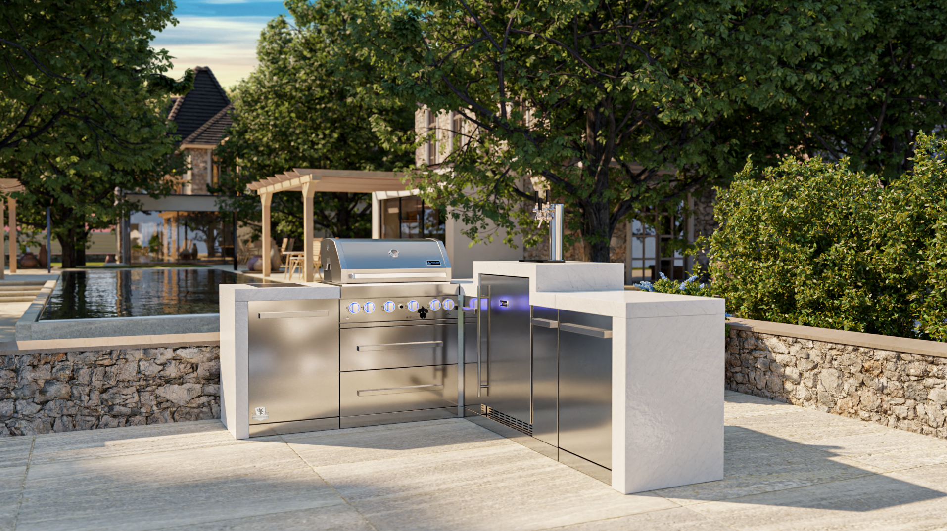 Mont Alpi 400 Deluxe BBQ Grill Island with 90 Degree Corner & Kegerator - MAi400-D90KEG
