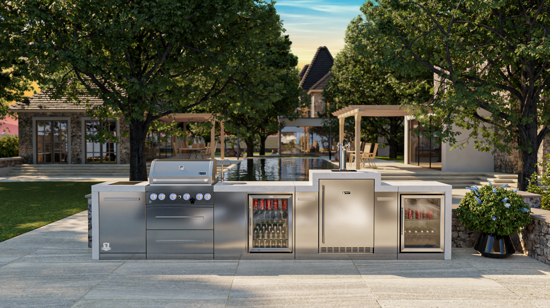 Mont Alpi 400 Deluxe Island with a Kegerator, Beverage Center and Fridge Cabinet