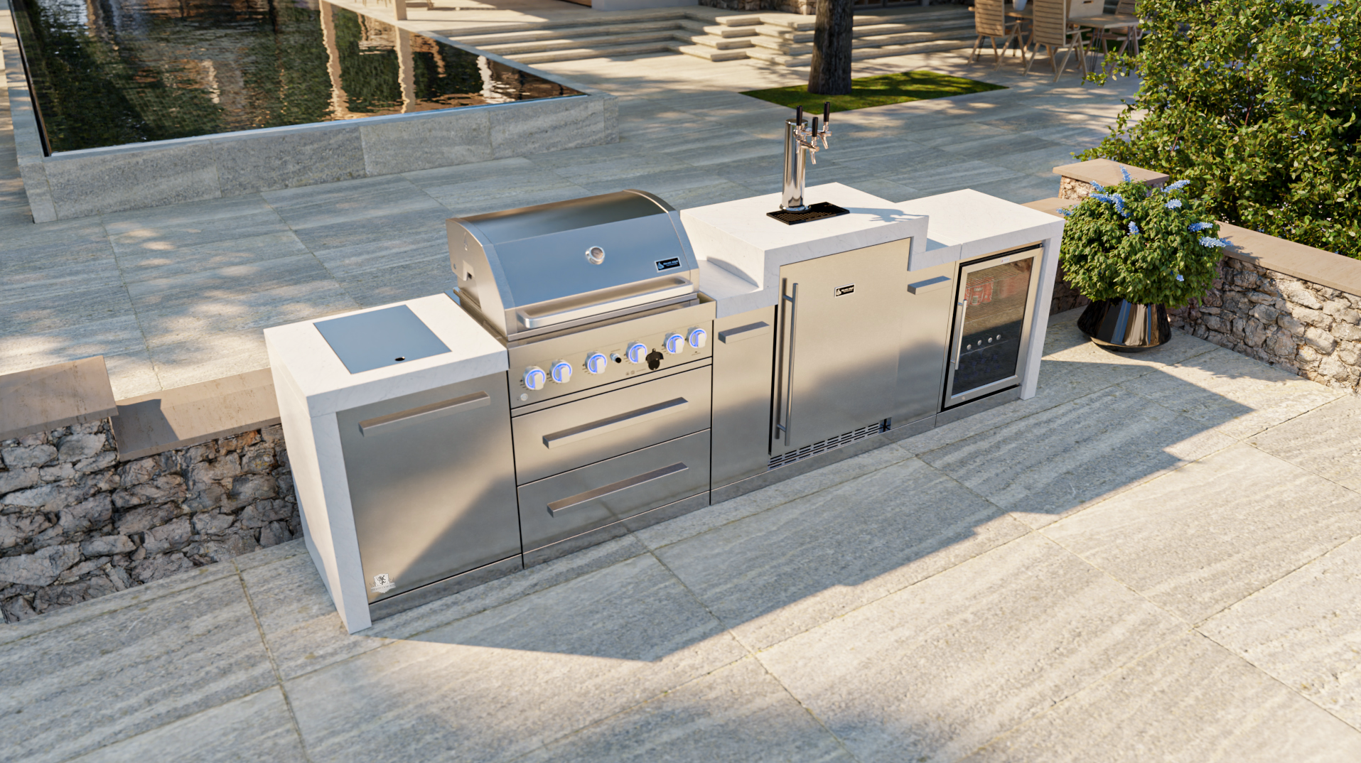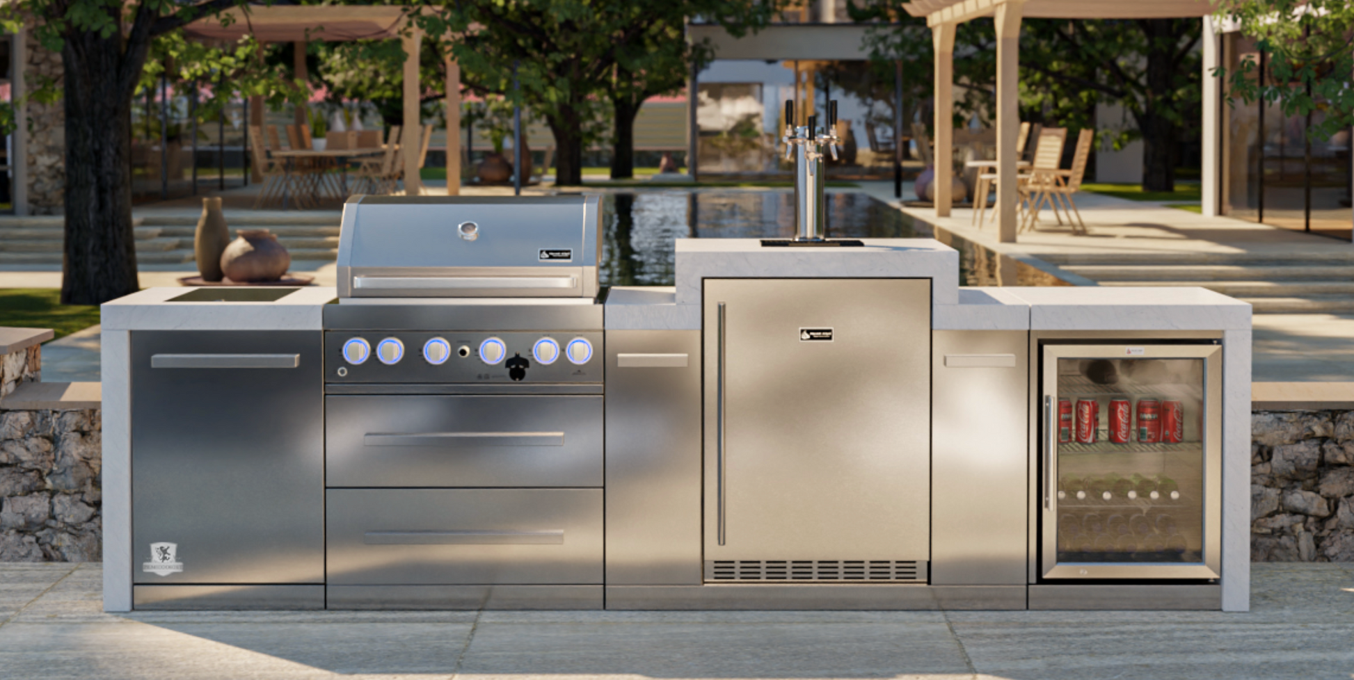 Mont Alpi 400 Deluxe BBQ Grill Island with Kegerator & Fridge Cabinet - MAi400-DKEGFC
