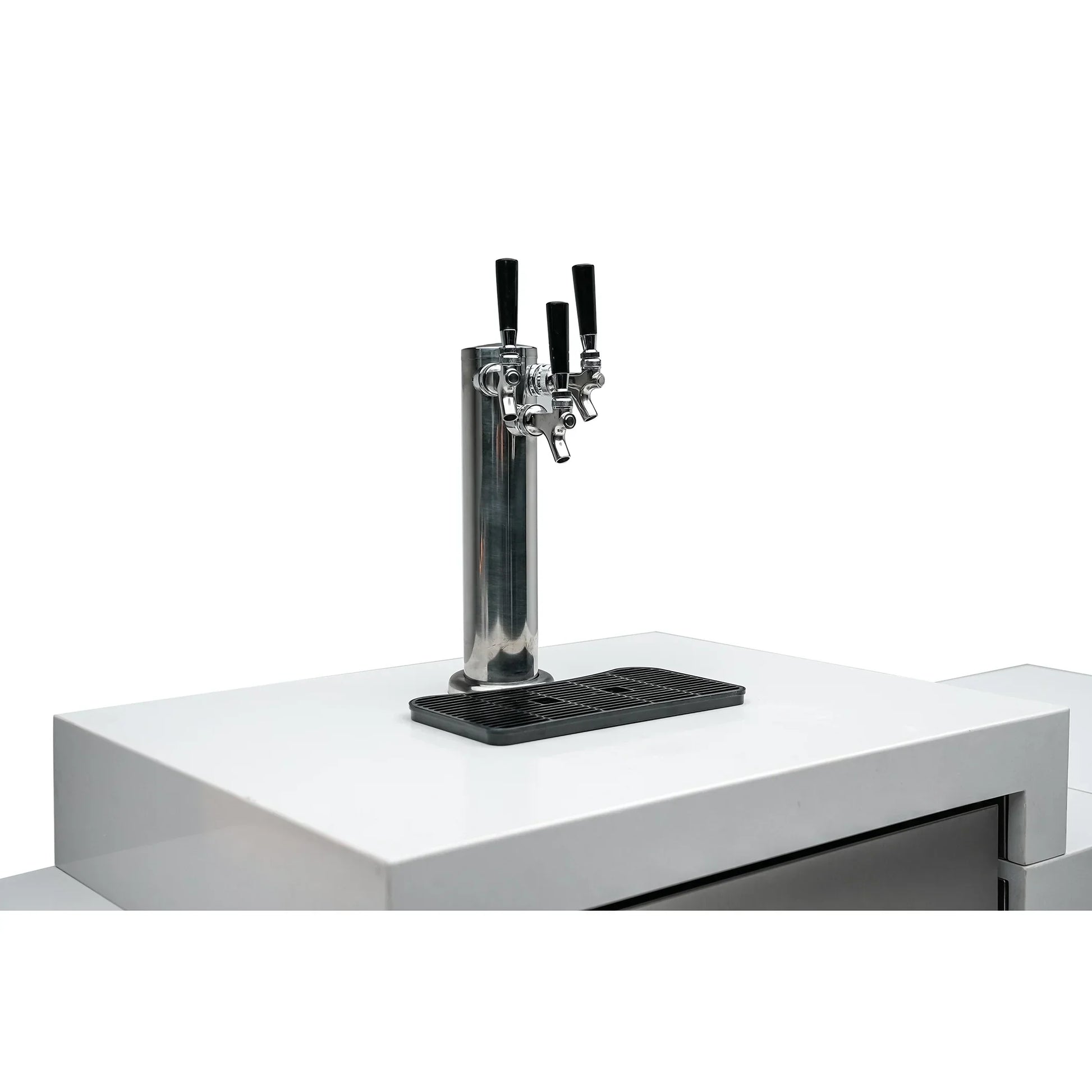 The 3 pour kegerator module with granite top and drip tray is perfect for 3 barrels of beer (or other) and is cooled in an outdoor rated fridge for that perfect ice cold pint.