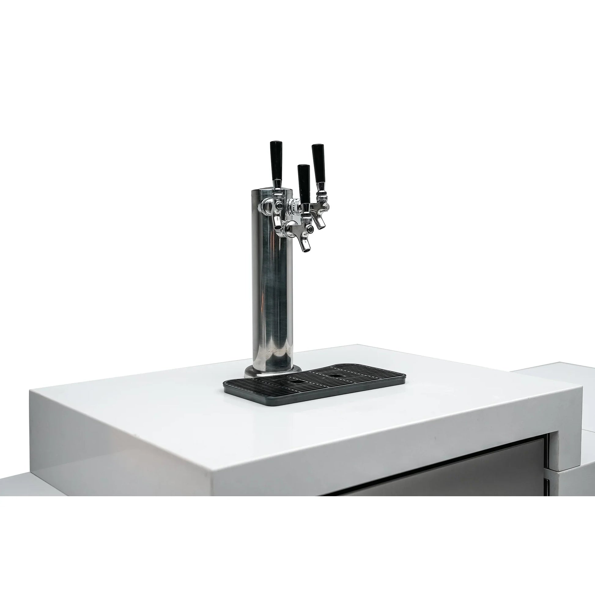 The 3 pour kegerator with granite top and drip tray is perfect for 3 barrels of beer (or other) and is cooled in an outdoor rated fridge for that perfect ice cold pint.