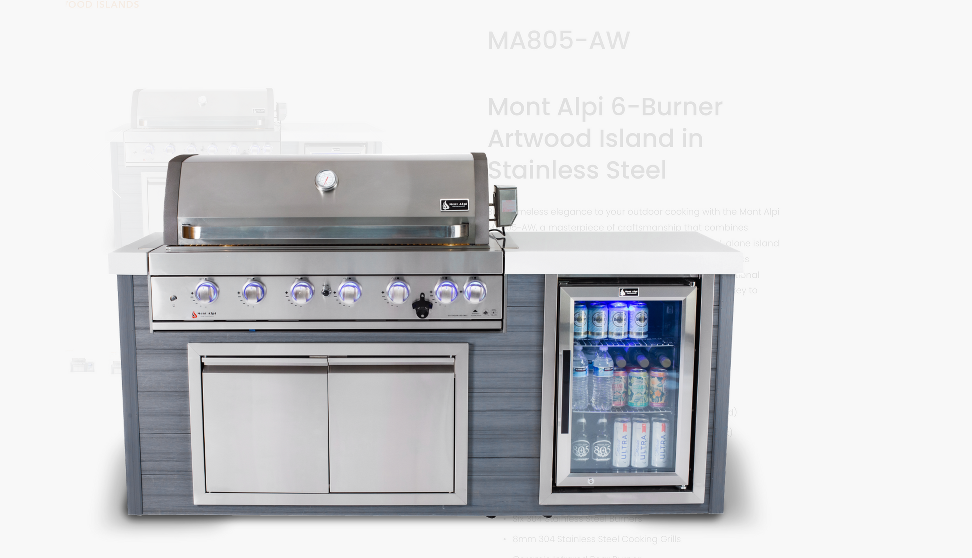 Mont Alpi 805 Artwood Island with Stainless Steel Grill and Fridge / MA805-AW