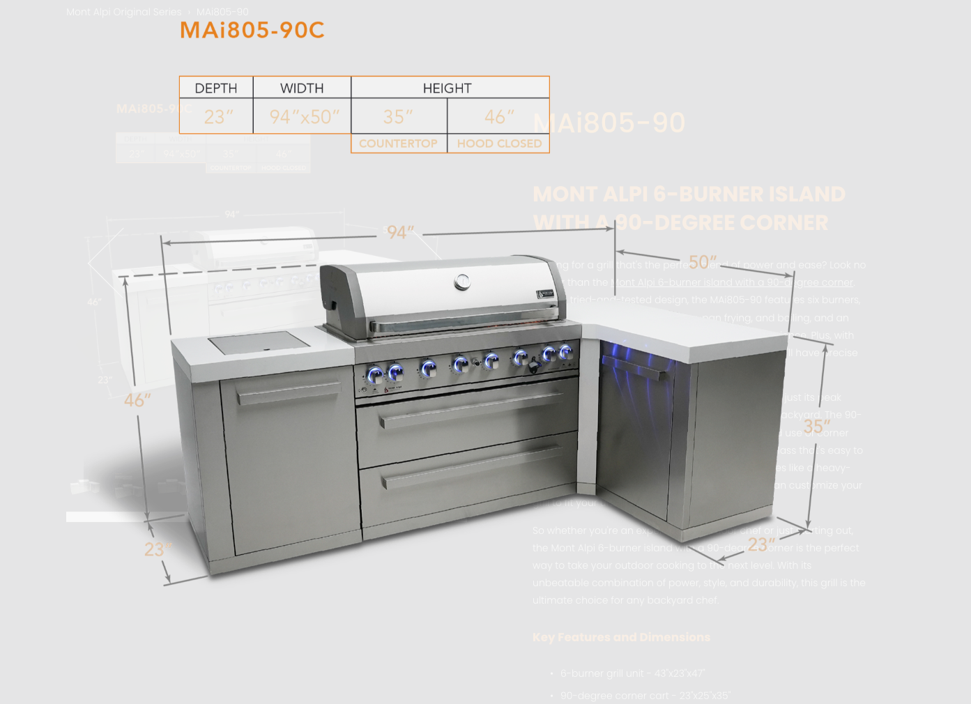 Mont Alpi 805 Island with a 90-degree Corner MAi805-90 - 94''
