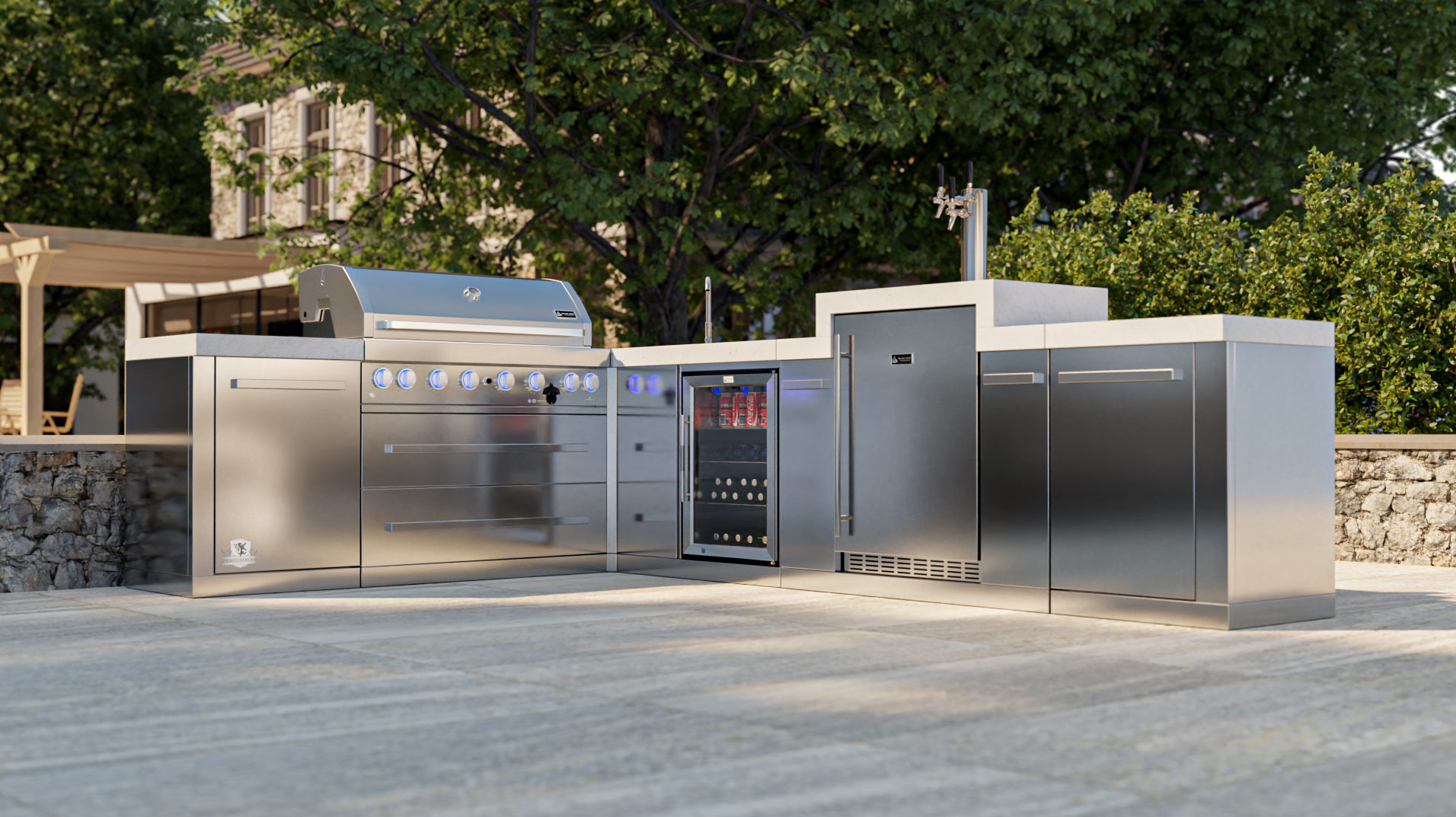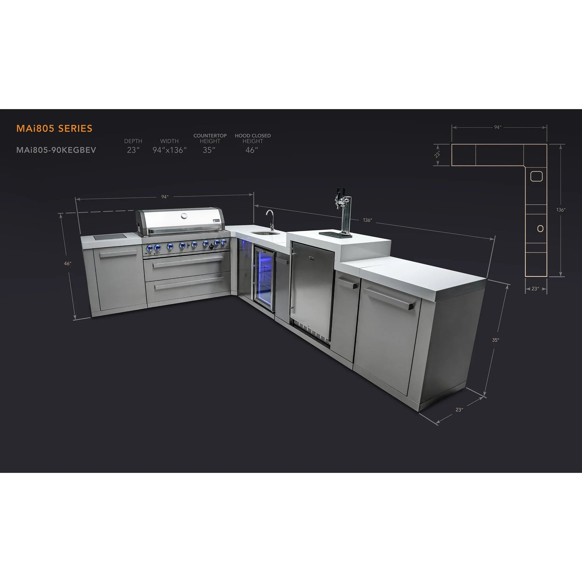 Mont Alpi 805 BBQ Grill Island with 90 Degree Corner, Kegerator & Beverage Center - MAi805-90KEGBEV