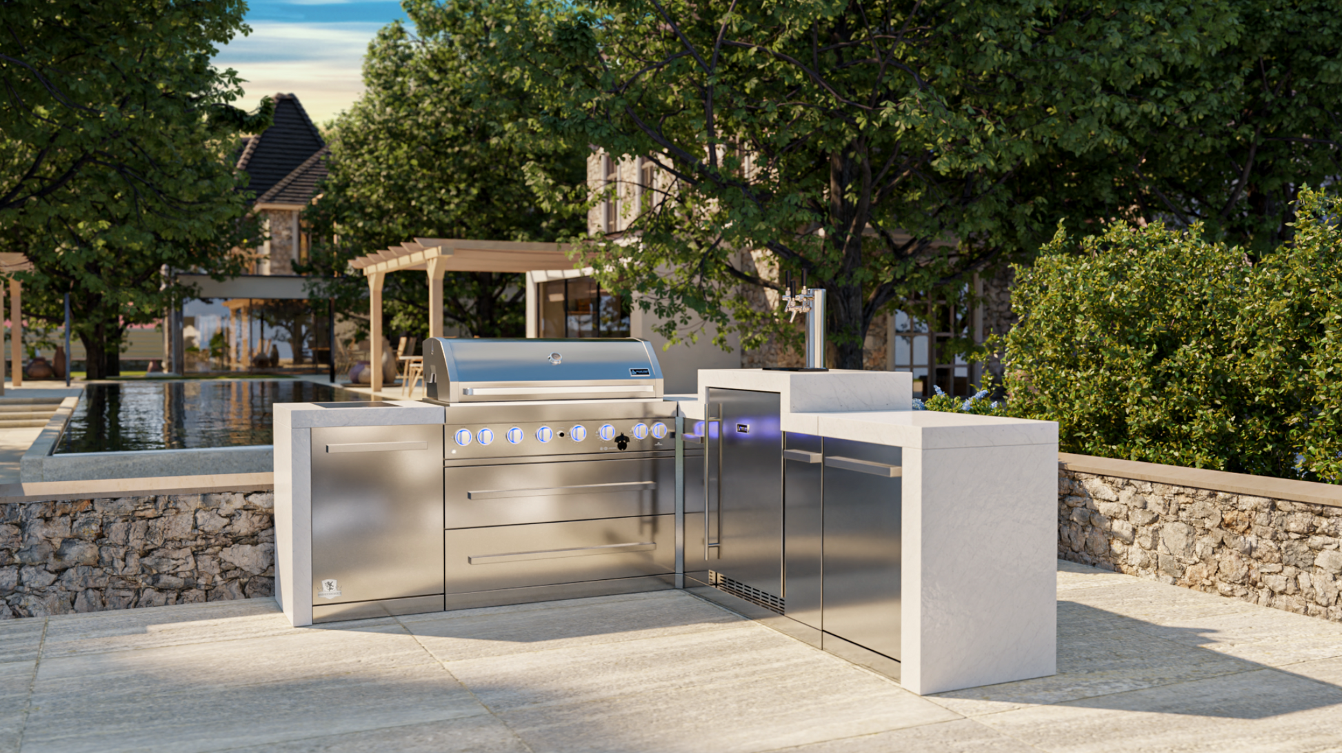Mont Alpi 805 Deluxe BBQ Grill Island with 90 Degree Corner & Kegerator - MAi805-D90KEG