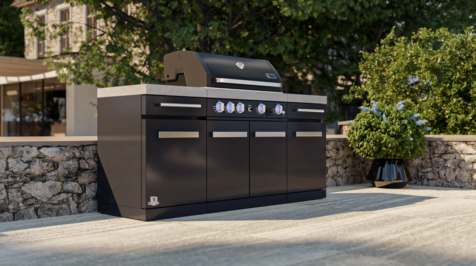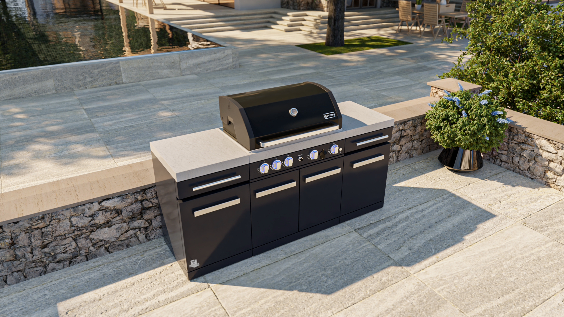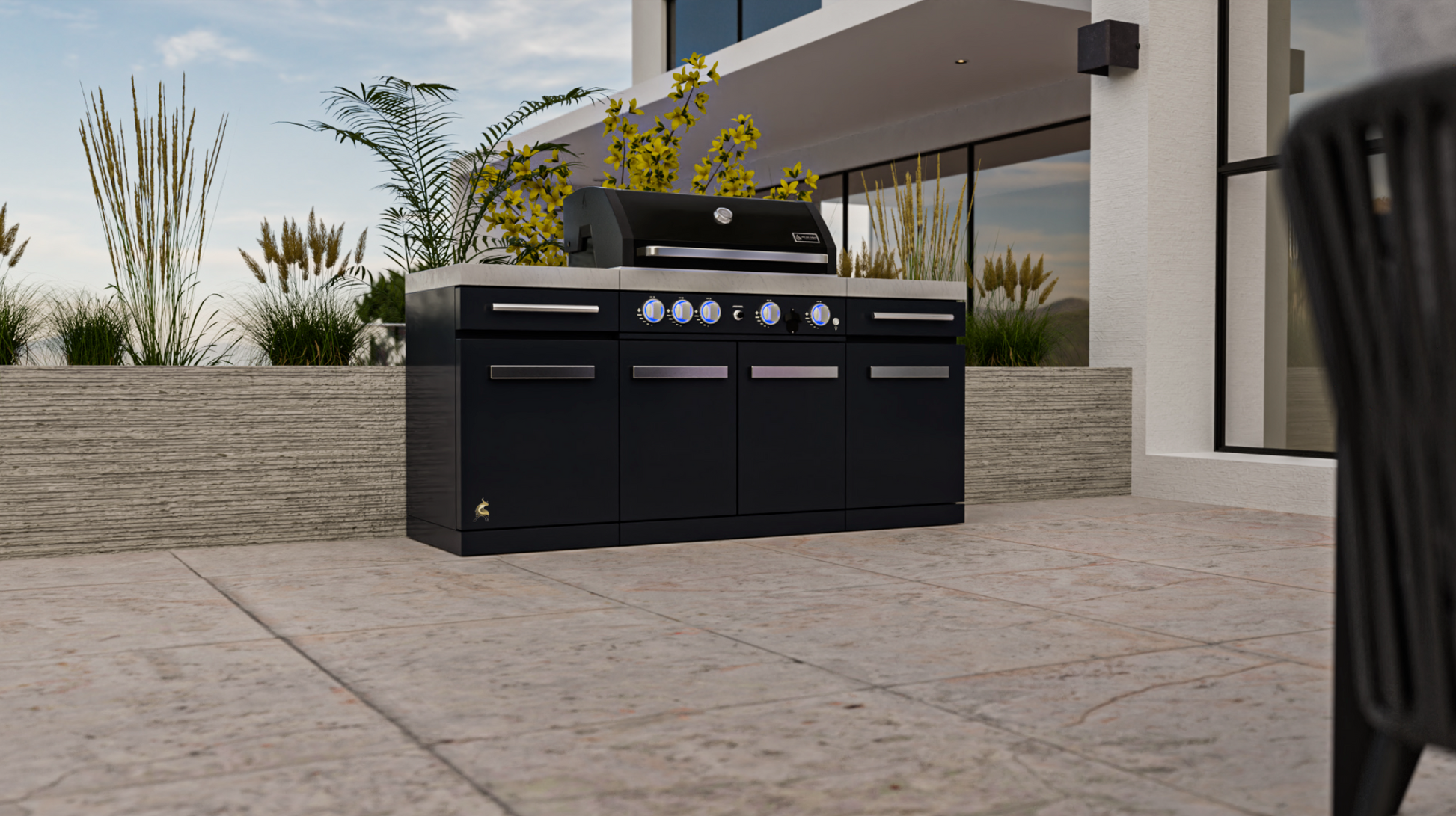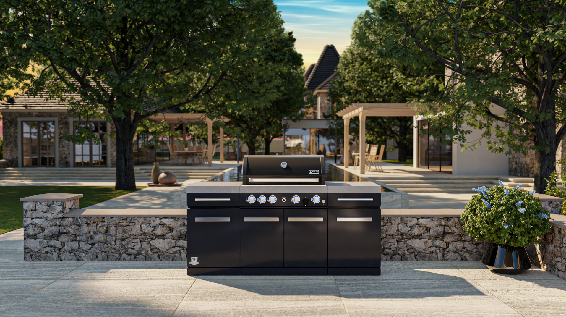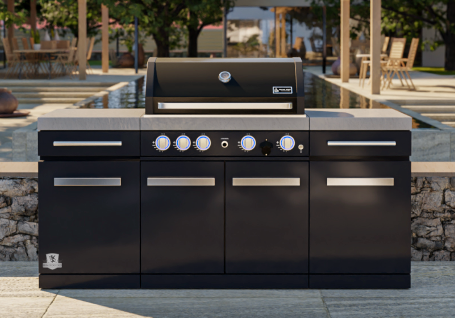 Upgrade your outdoor cooking game with the Mont Alpi 957 Island - a stylish and functional four-burner grill with a ceramic infrared rear burner and white granite surfaces. Made with a durable combination of stainless steel and black powder-coated steel, the MA-957 grill is sure to impress your guests.