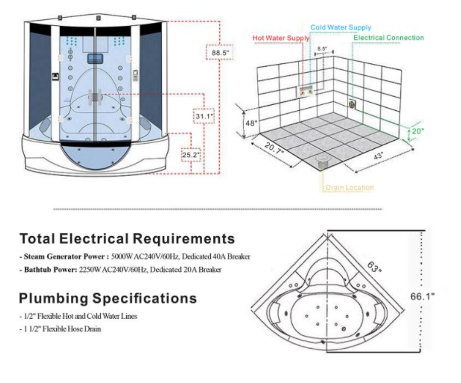 For a complete home spa experience, the Superior provides a seamless combination of shower enclosure, steam shower and hydro massage whirlpool bathtub all within the same cabin. In addition, the Superior features 12″ digital TV, touchscreen control panel, bluetooth compatibility, 5KW steam generator & thermostatically controlled water temperature amongst other features. The unique transparent window at the front of the bathtub makes the Superior a modern addition to any bathroom. Plus 10 Year Warranty!
