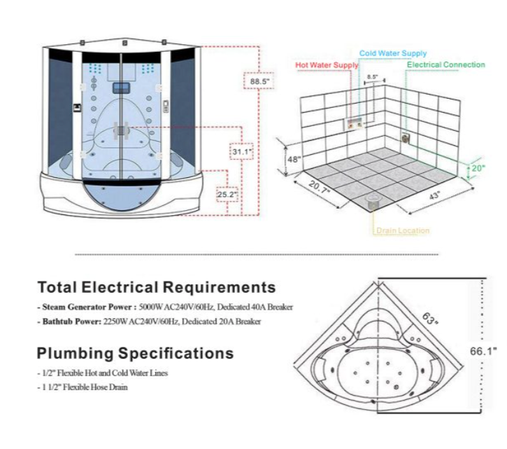For a complete home spa experience, the Superior provides a seamless combination of shower enclosure, steam shower and hydro massage whirlpool bathtub all within the same cabin. In addition, the Superior features 12″ digital TV, touchscreen control panel, bluetooth compatibility, 5KW steam generator & thermostatically controlled water temperature amongst other features. The unique transparent window at the front of the bathtub makes the Superior a modern addition to any bathroom. Plus 10 Year Warranty!