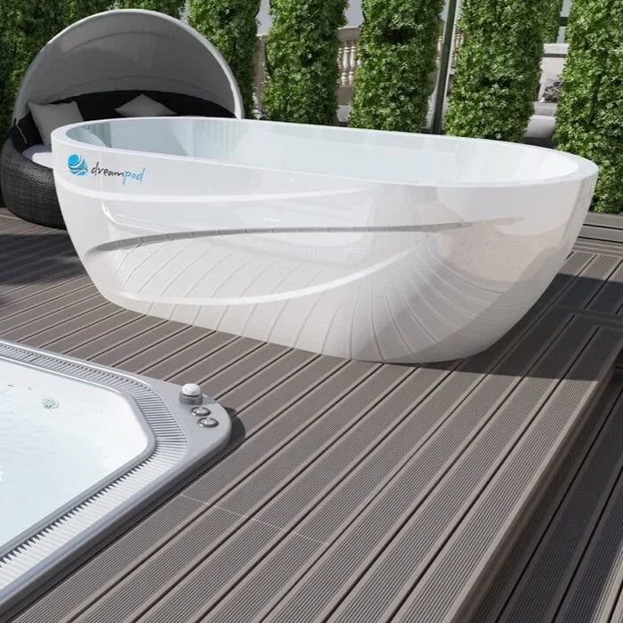 Here at Dreampod we’re all about options. First up, are our two commercial products, the standard bath and the barrel. Each is crafted using the best quality fiberglass, plastics, and hand polished for the shiniest of finishes. Both have a double hull GRP base with foam insulation for better cold retention. As well as an anti-slip floor.